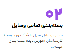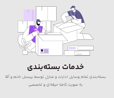 خدمات بسته بندی اثاثیه منزل و لوازم شرکت شما را با رعایت استاندارد های مهم انجام دهد. ترس از باربری از معضل هایی است که امروزه با آن مواجه هستیم چراکه جدا از جابجایی و حمل اسباب و لوازم، باید در قدم اول آنها را بسته بندی و ضد ضربه کرد که کاری زمان گیر و حوصله بر است.